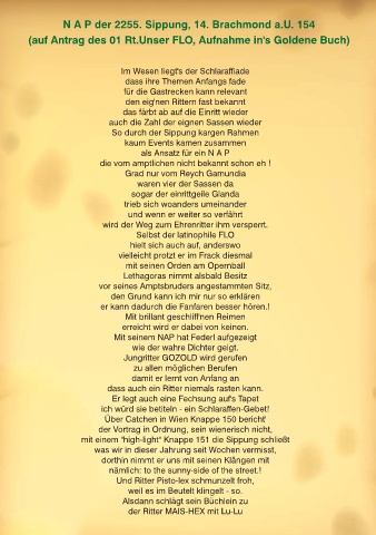 N A P der 2255. Sippung, 14. Brachmond a.U. 154
