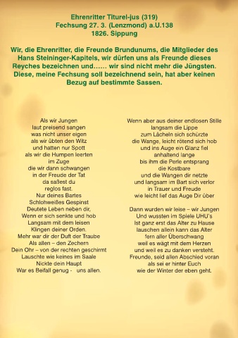 Wir, die Ehrenritter, die Freunde Brundunums, die Mitglieder des